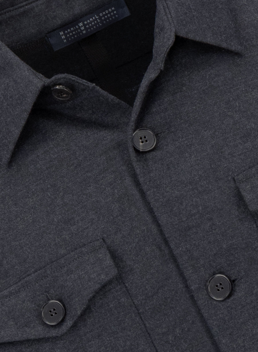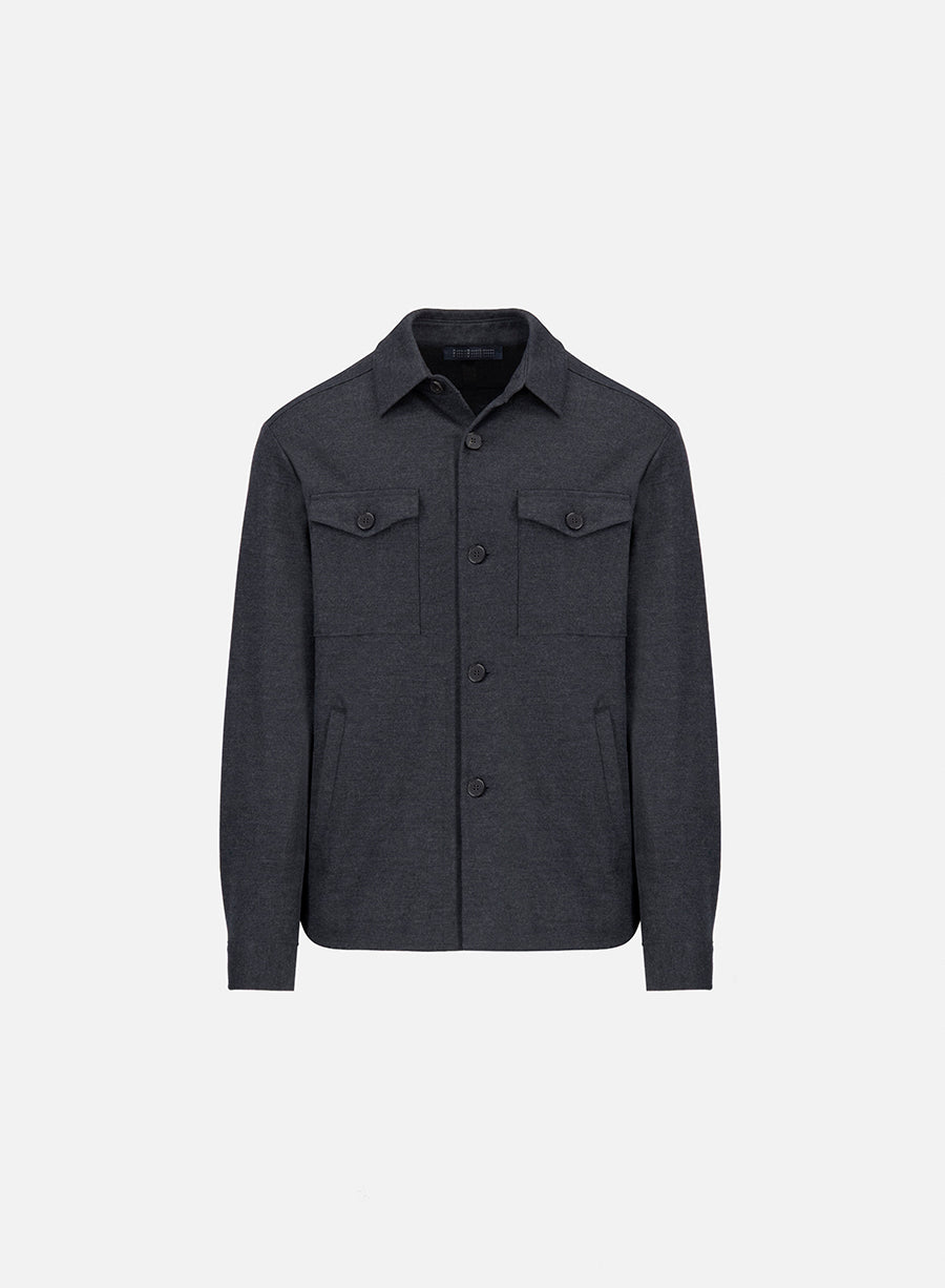 Shirt jacket, unlined in knitted merino wool. Single-breasted long jacket, straight shape featuring breast pockets, welt pockets, 5-button fastening and shirt collar.Clean finish.Made in Italy with Japanese fabric.