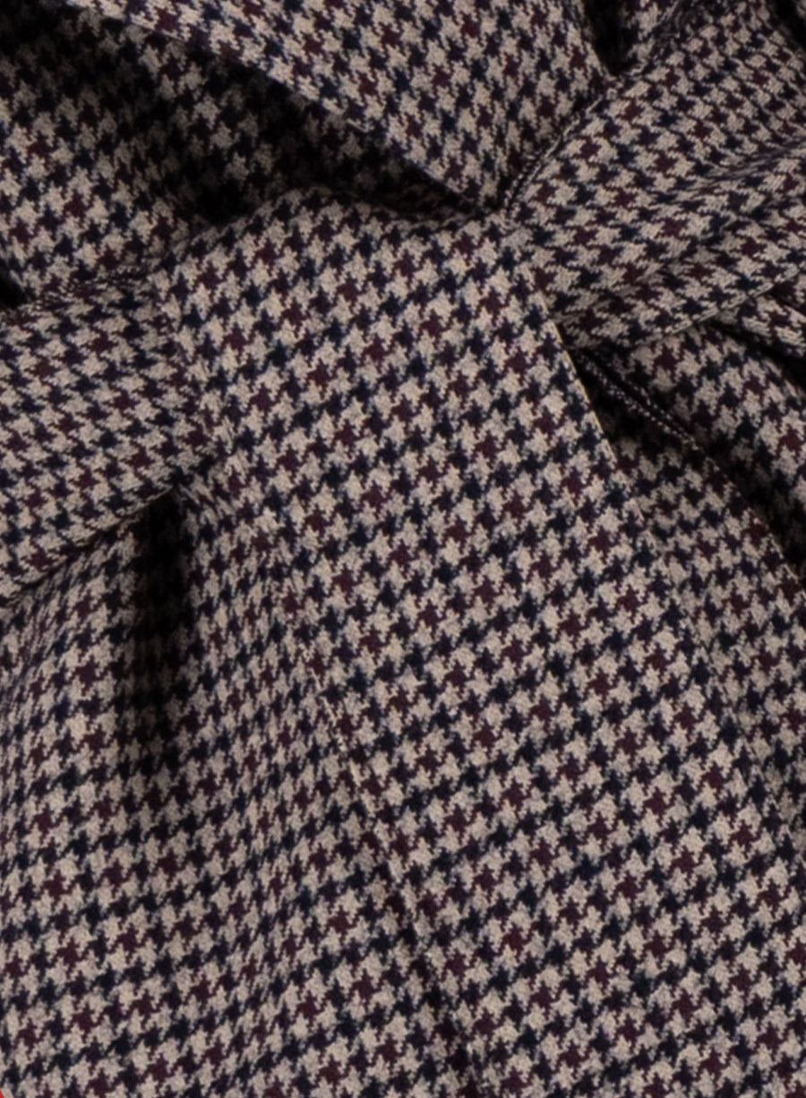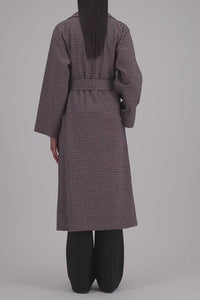 Belted clutch coat, unlined in knitted tattersal. Wide welt pockets, belt loops, and chunky detachable self-tie belt at waist. Long body with dropped shoulder and wide long sleeve featuring a broad double layer lapel. Raw-edge finish. Made in Italy with Italian fabric.The model is wearing size IT 42.