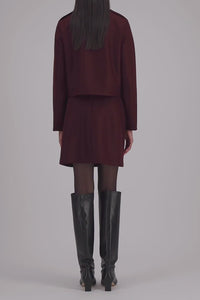 Collarless jacket, unlined in knitted ligh felted wool.Short jacket with shoulder pads and boxy shape, featuring a round neckline and four golden button closure .Clean finish.Made in Italy with Italian fabric.