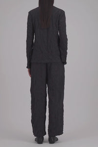 High collar blazer, unlined in knitted creased wool.Stand-up collar blazer, boxy shape with fitted long sleeve featuring patch pockets and 3-button fastening plus 1 collar button for full closure.Clean finish.Made in Italy with Italian fabric.The model is wearing size IT 42.