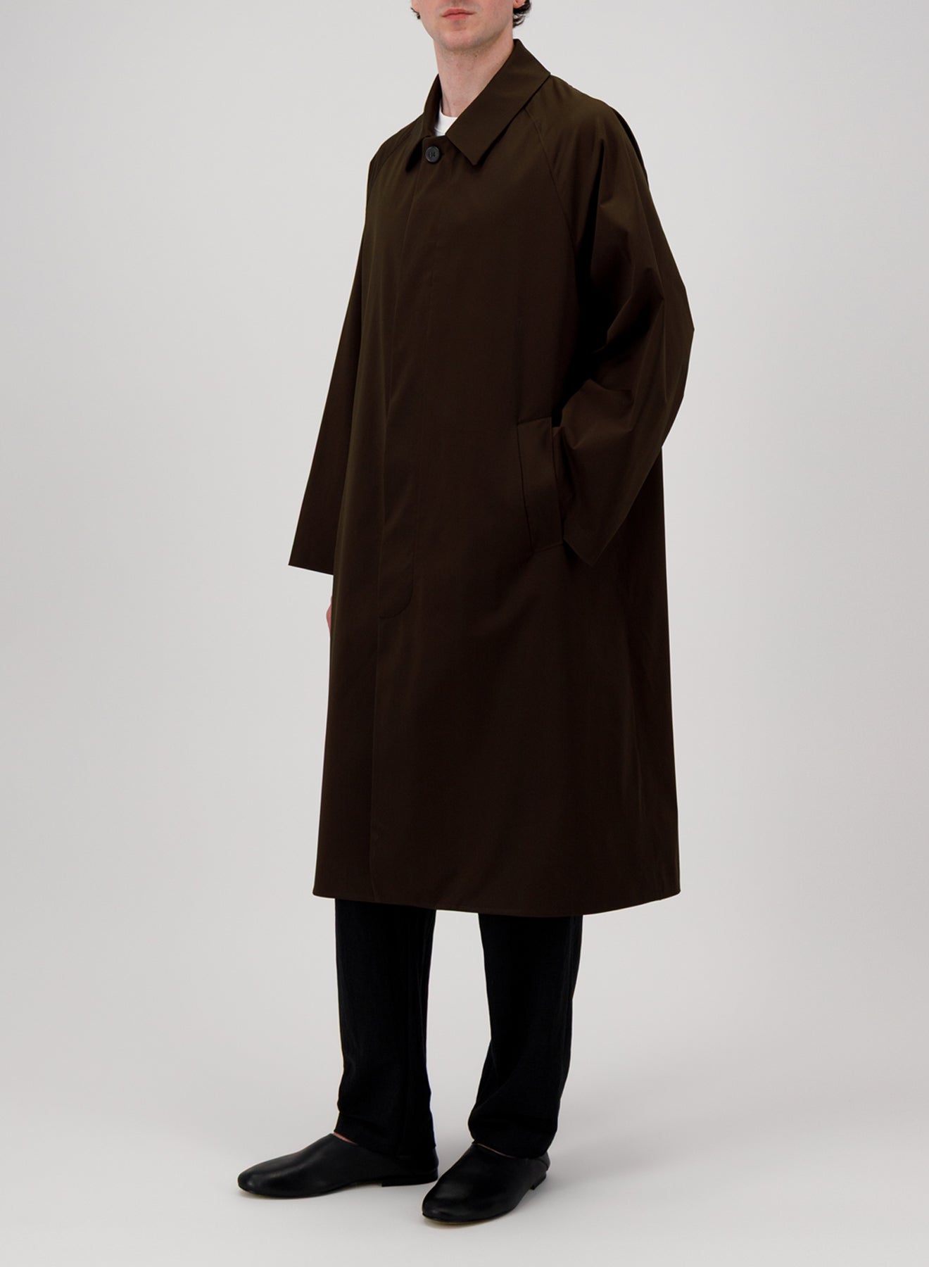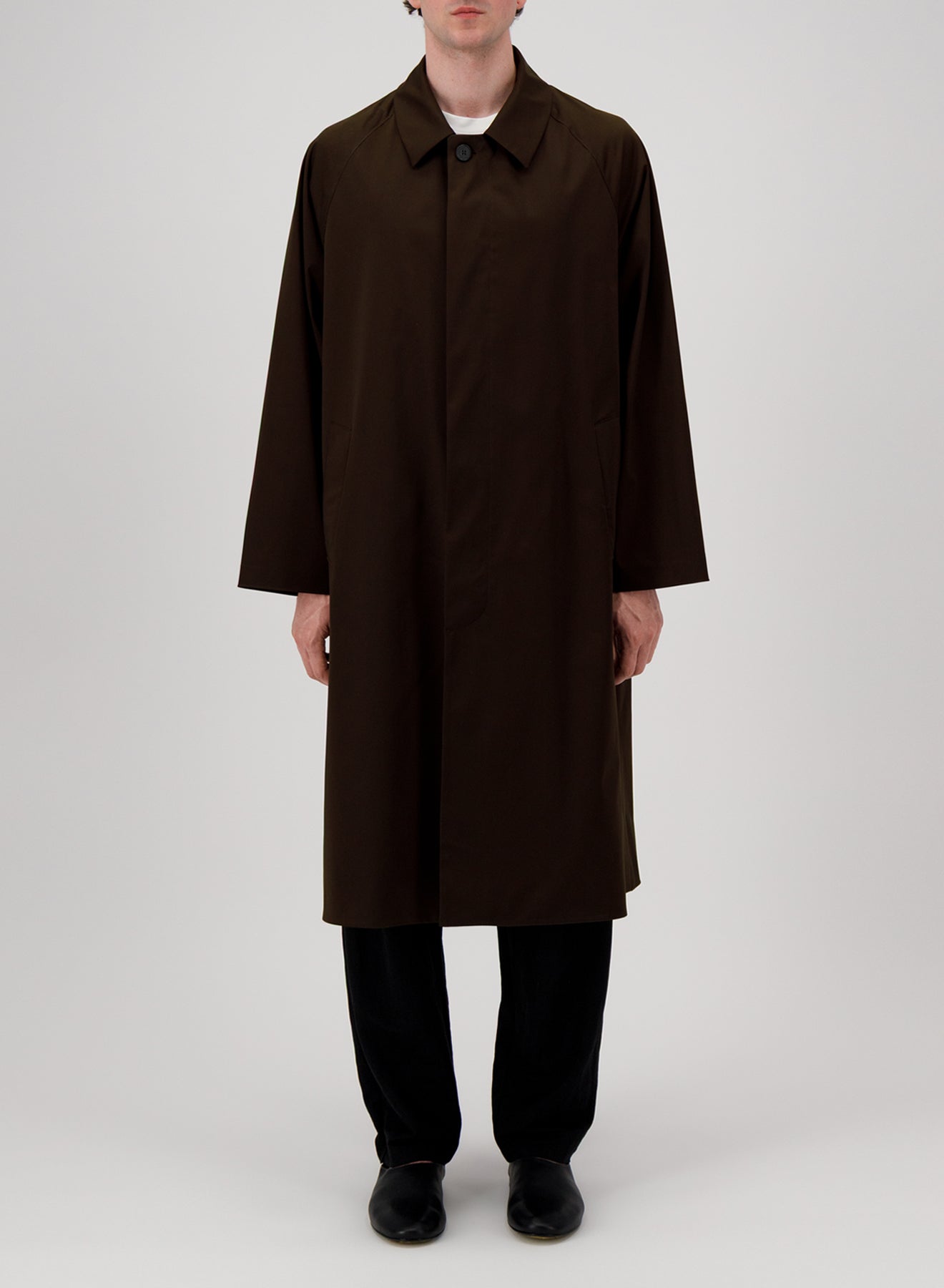 Fly front balmacaan coat, in knitted light technic . Knee -length overcoat featuring dropped raglan shoulders, 4 hidden buttons single-breasted fastening plus 1 upper button for full closure, central vent at back, shirt collar and welt pockets.Clean finish.Made in Italy with Japanese fabric.| MEN | XS | S | M | L | XL | XXL | XXXL |
