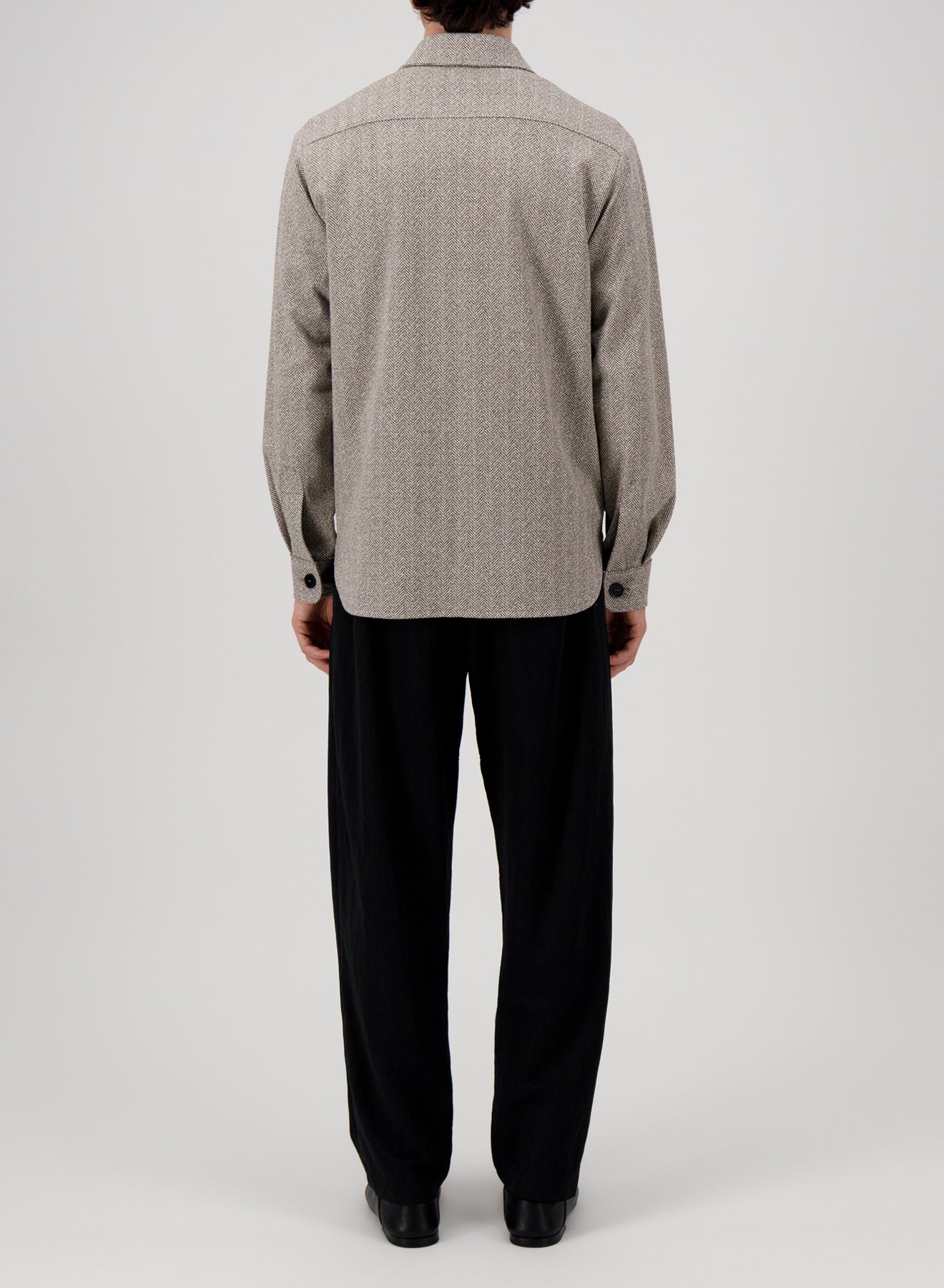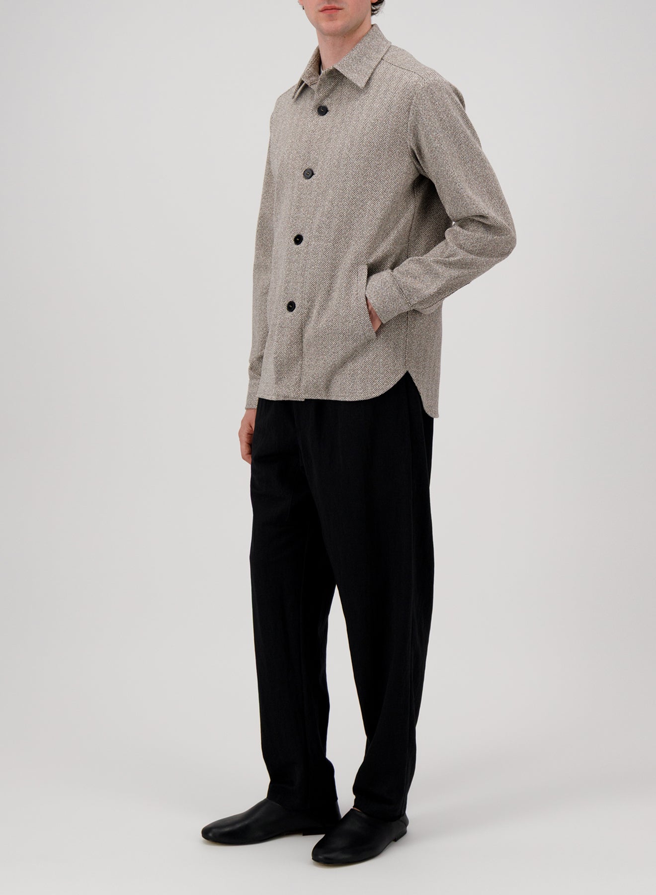 Shirt Jacket, unlined in knitted cotton bouclé herringbone. Single-breasted long jacket, straight shape featuring welt pockets, 5-button fastening and shirt collar.Clean finish.Made in Italy with Italian fabric.| MEN | XS | S | M | L | XL | XXL | XXXL |