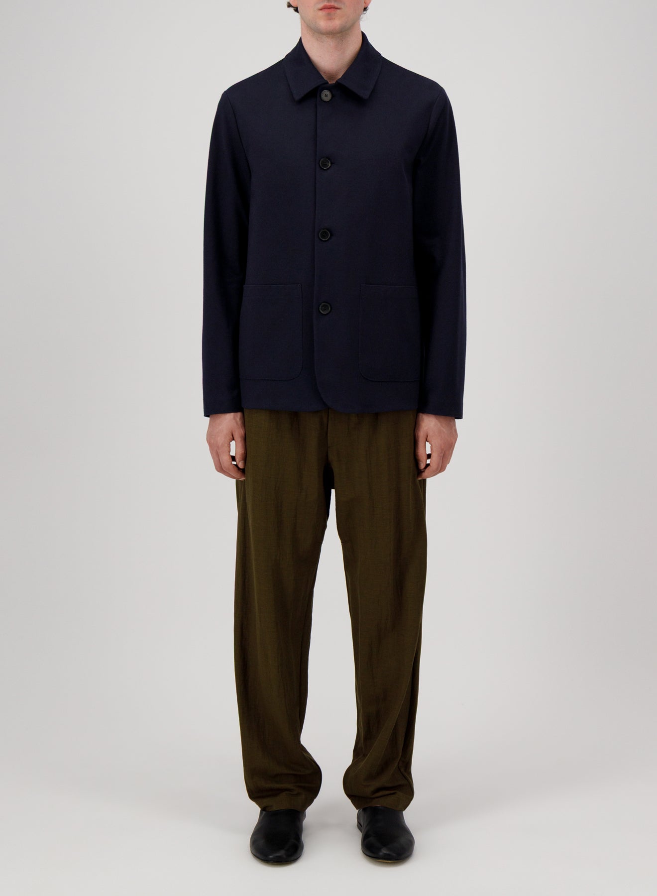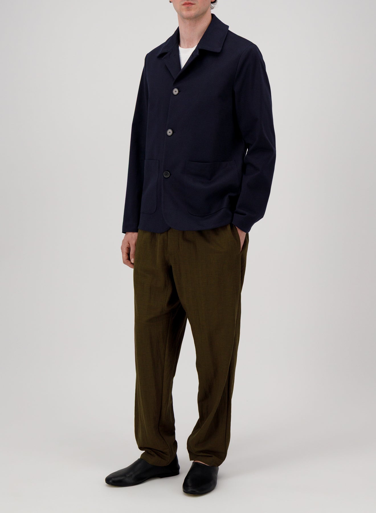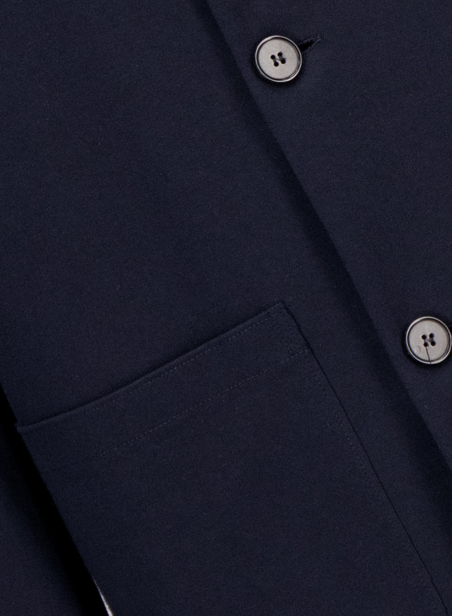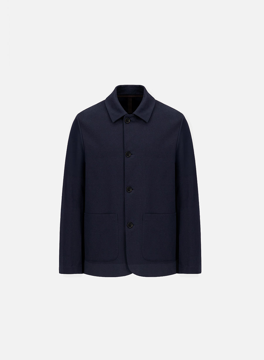 Utility jacket, unlined in knitted cotton jersey.Single-breasted jacket, long sleeves, straight shape, featuring patch pockets, 4-button fastening with full cutton up closure and round collar. Raw-edge finish.Made in Italy with Italian fabric.| MEN | XS | S | M | L | XL | XXL | XXXL |