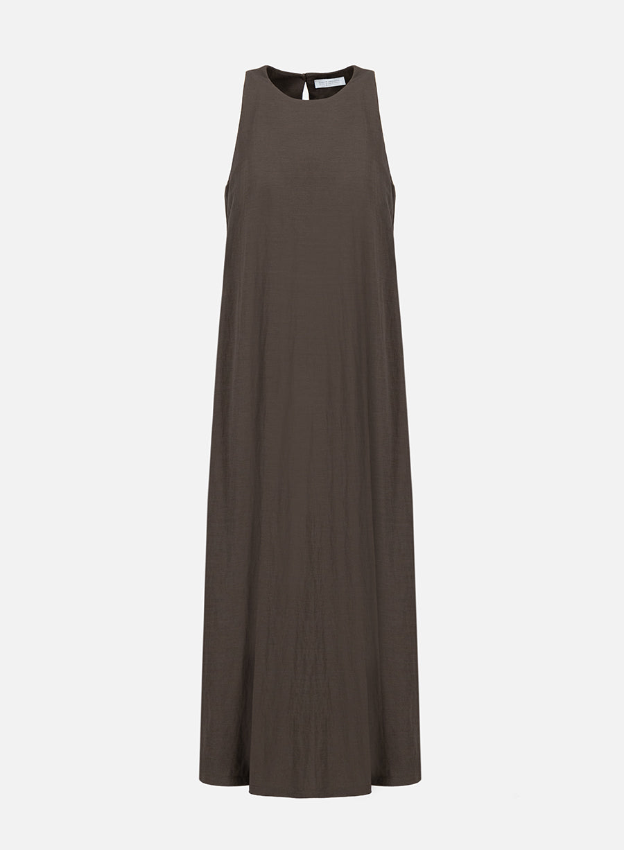 Long halter neck dress unlined in knitted rayon. Long dress, A-line sleeveless shape with round neckline and single button back closure. Clean finish. Made in Italy with Japanese fabric.The model is wearing size IT 42.