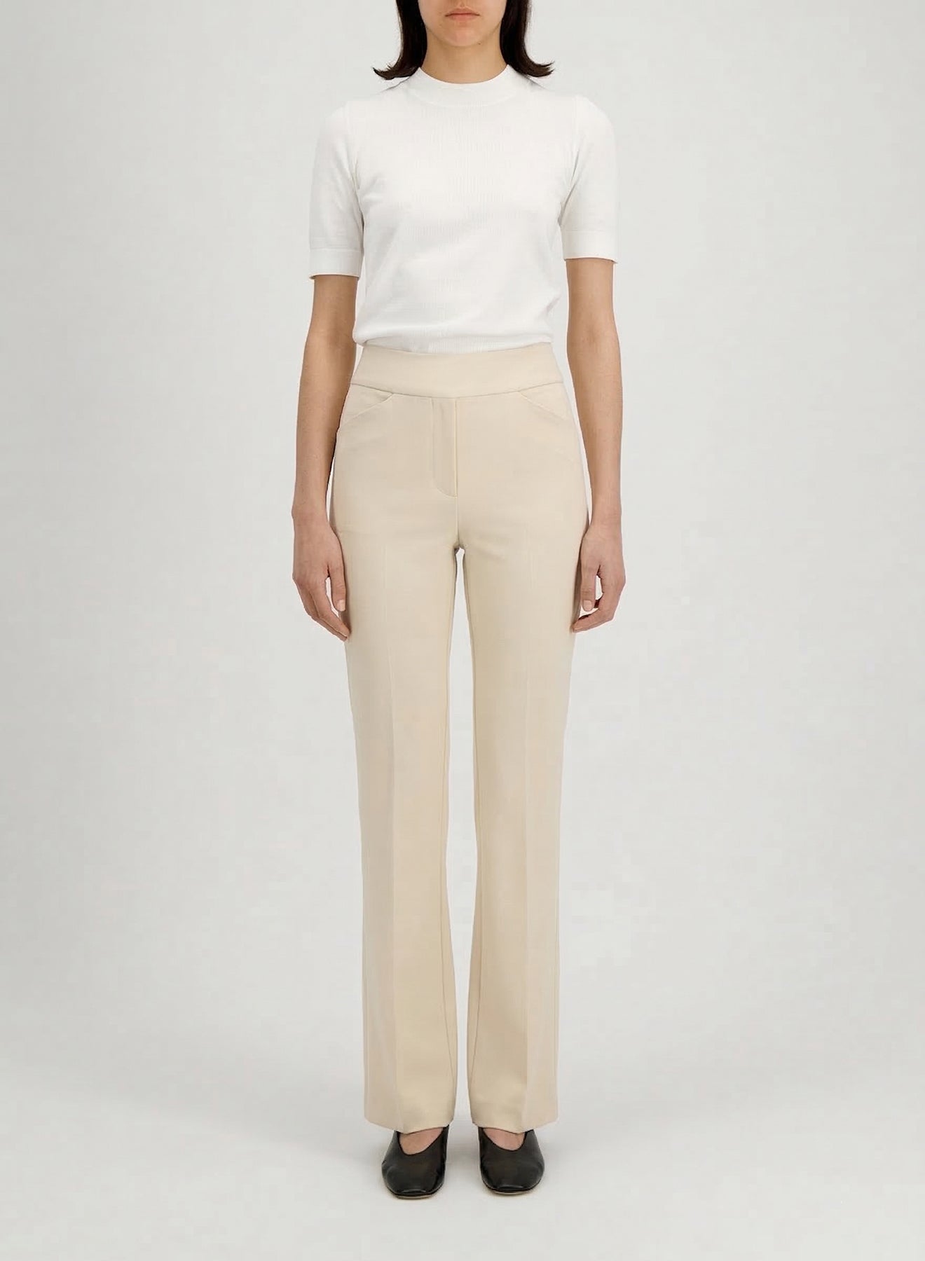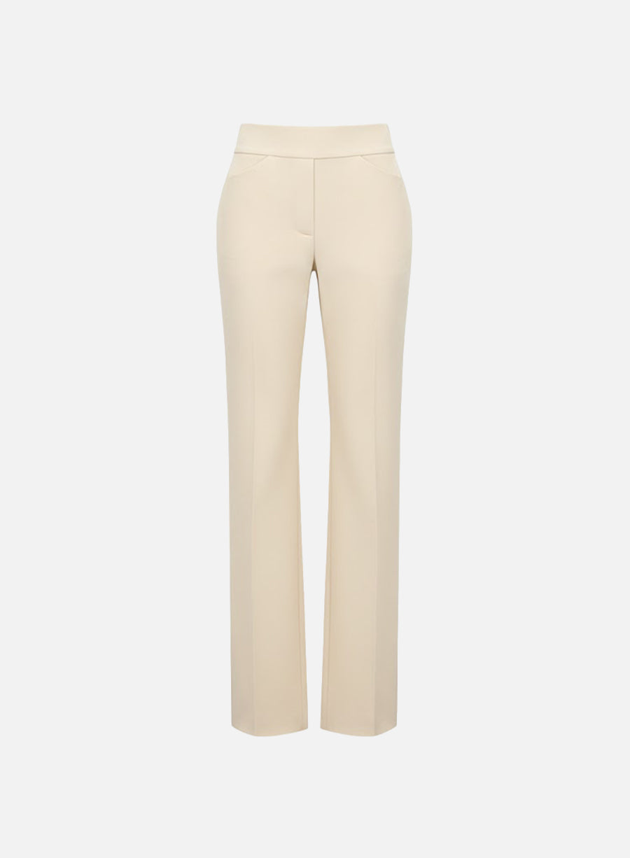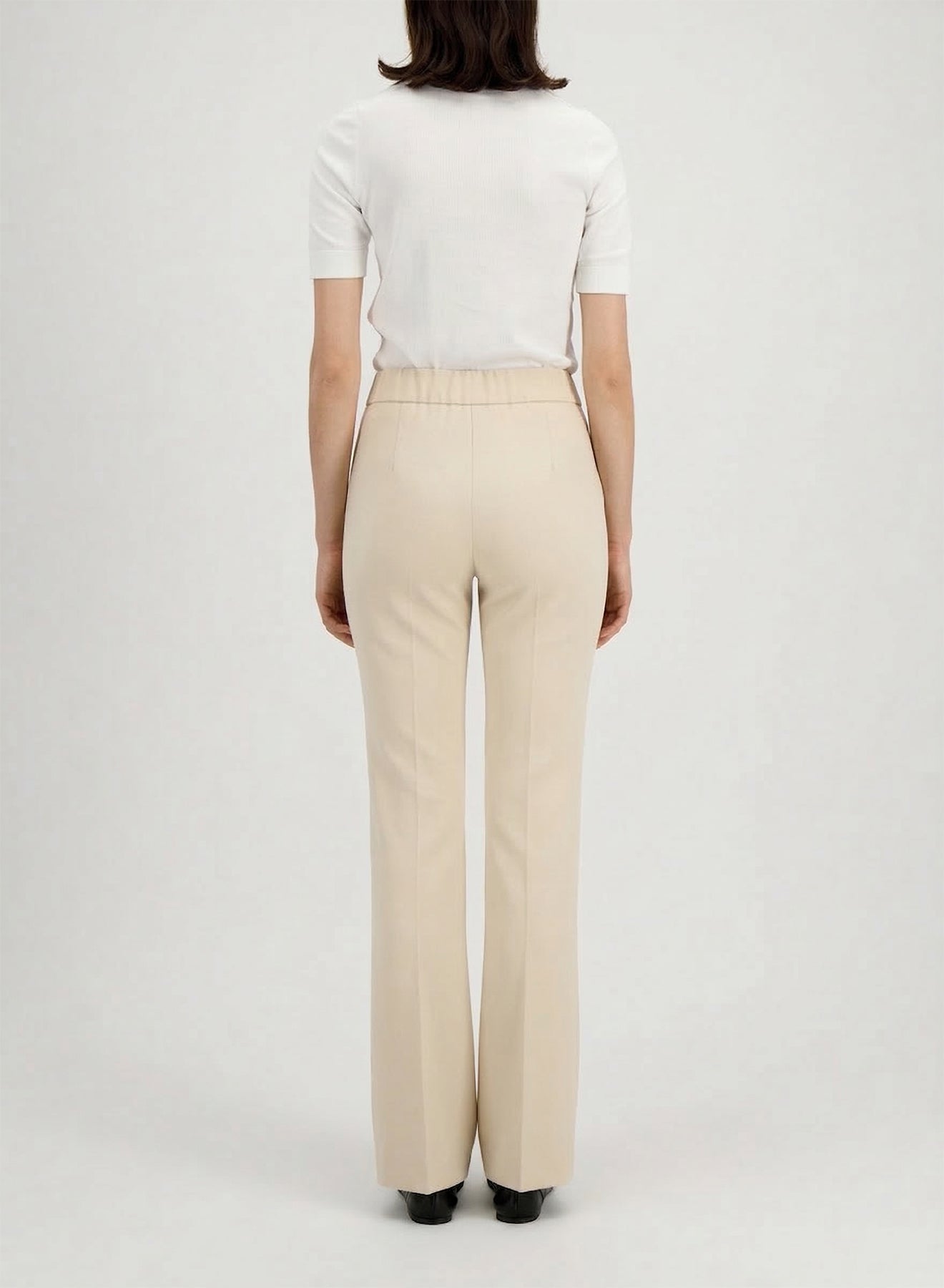 Flared trousers, unlined in knitted techno viscose. Long trousers with 2 side pockets featuring elasticated waist, and narrow legs. Clean finish.Made in Italy with Italian fabric.The model is wearing size IT 42.