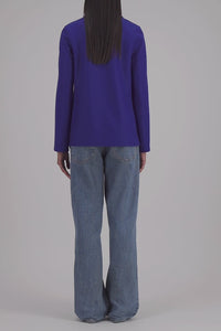 Boyfriend blazer, unlined in knitted light felted wool.Stand-up collar blazer, boxy shape with fitted long sleeve featuring patch pockets and 2-button fastening plus 1 collar button for full closure.Raw-edge finish.Made in Italy with Italian fabric.The model is wearing size IT 42.
