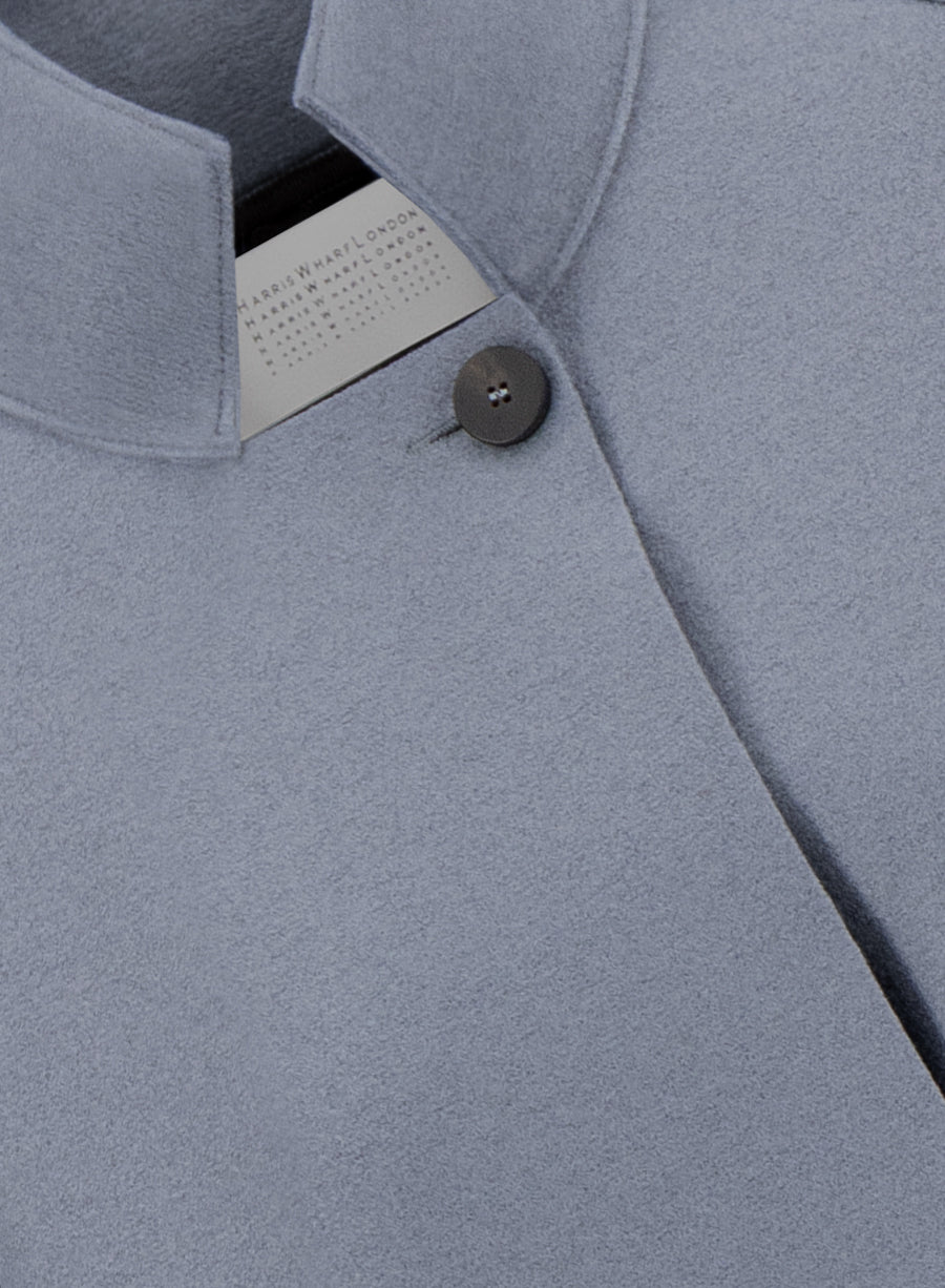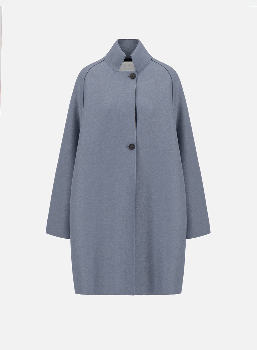 Raglan cape, unlined in knitted felted wool. Oversized cape with long sleeve featuring 2 button fastening and stnadu-up collar. Single layer garment making it lighter than our coats. Raw-edge finish.Made in Italy with Italian fabric.The model is wearing size IT 42.