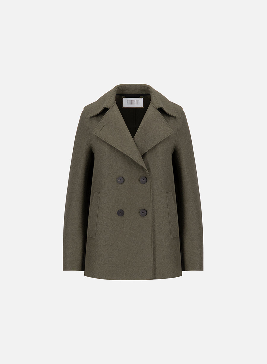 Peacoat, unlined in knitted felted wool. Double-breasted short jacket, A-line shape with fitted long sleeve featuring welt pockets, classic collar shape, wide lapel and 4-button fastening. Raw-edge finish.Made in Italy with Italian fabric.The model is wearing size IT 42.