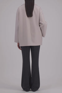 Double-breasted jacket, unlined in knitted felted wool.Oversized, short jacket with dropped shoulders, long wide sleeve and double-breasted fastening featuring a notched lapel and side-seam pockets. Raw-edge finish.Made in Italy with Italian fabric.The model is wearing size IT 42.