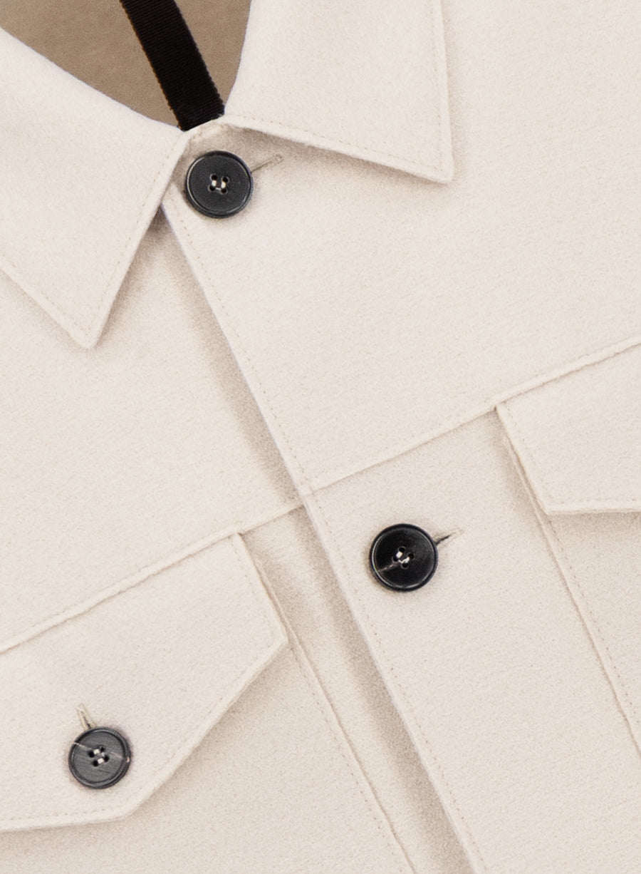 Western jacket, unlined in knitted felted wool.Single-breasted short jacket, straight shape, featuring welt pockets, 5-button fastening, shirt collar, 2 patch pockets at chest and button closure at cuff. Raw-edge finish.Made in Italy with Italian fabric.MEN | XS | S | M | L | XL | XXL | XXXL |