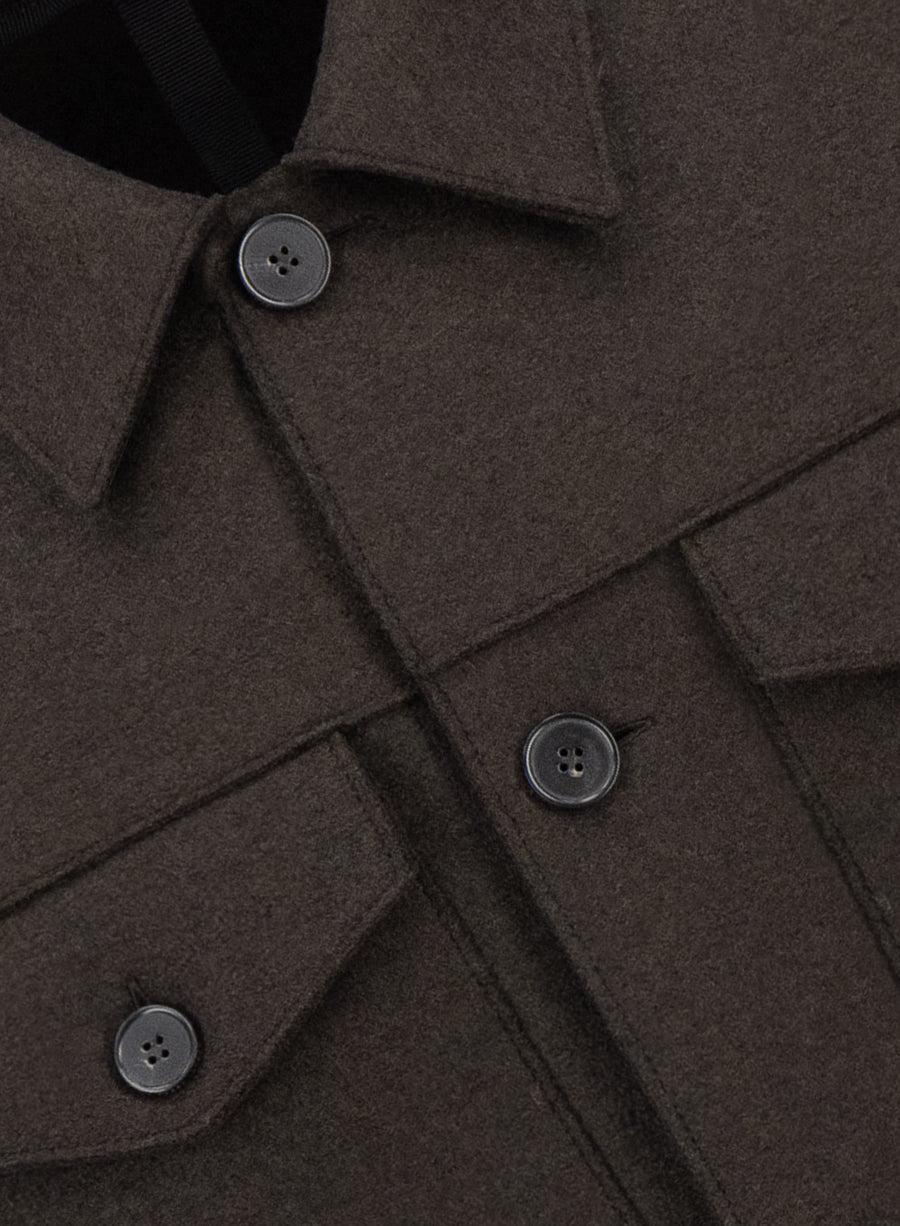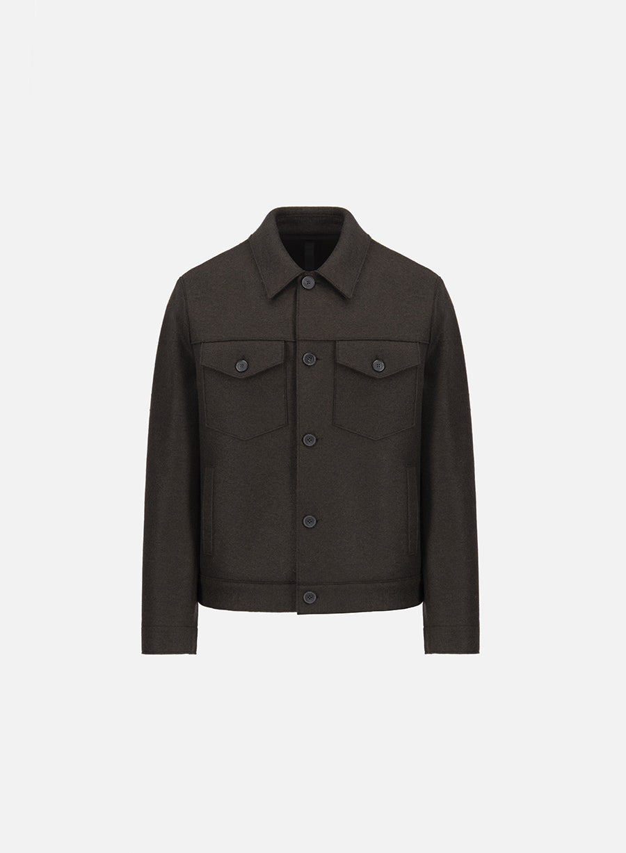 Western jacket, unlined in knitted felted wool.Single-breasted short jacket, straight shape, featuring welt pockets, 5-button fastening, shirt collar, 2 patch pockets at chest and button closure at cuff. Raw-edge finish.Made in Italy with Italian fabric.